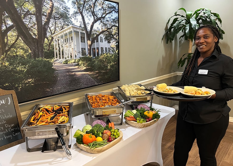 Forget about the daily tasks of cooking and cleaning. Our residents enjoy a restaurant-style dining experience 3 times a day, with a variety of chef-prepared entrées to choose from.